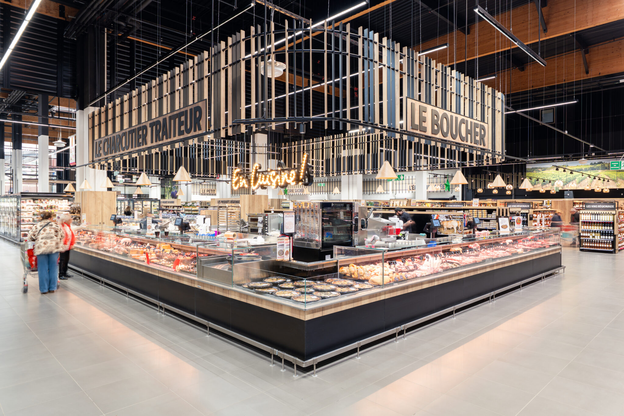 Ainsi, cet hypermarché construit une identité équilibrée entre univers artisanal et naturel, écriture contemporaine et influence industrielle légère, offrant un cadre à la fois chaleureux, structuré et résolument moderne.